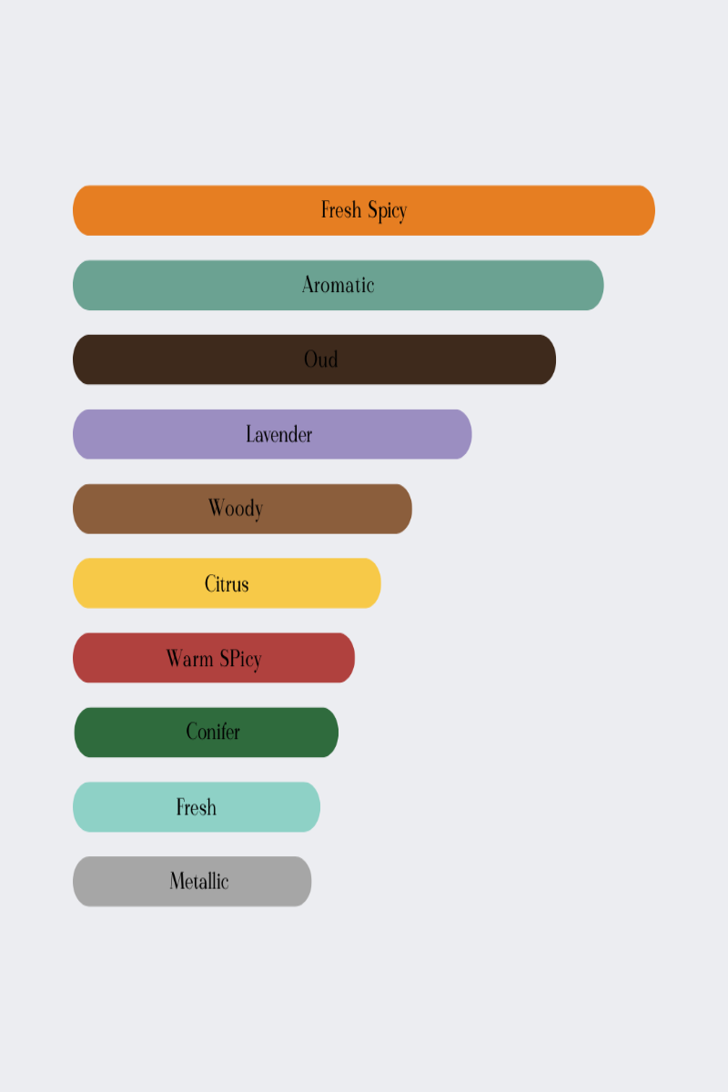 Fresh Spicy, Aromatic, Oud, Lavender, Woody, Citrus, Warm Spicy, Conifer, Fresh, Metallic
